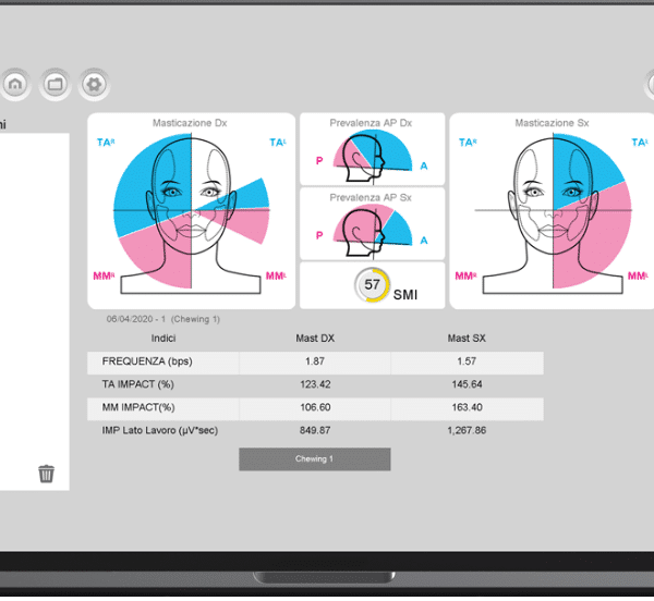 Grâce à 2 capteurs placés sur les tempes pour mesurer la pression des muscles temporaux, et 2 autres capteurs placés sur les mâchoires pour mesurer la pression des muscles Masséters, nous pouvons ainsi mettre en évidence un déséquilibre occlusal.